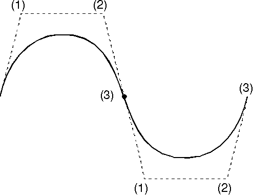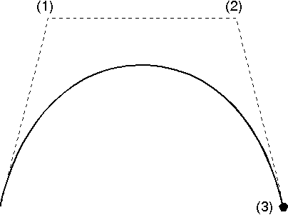 Points (1) and (2) are the control points of the spline, and point (3) is the end point.