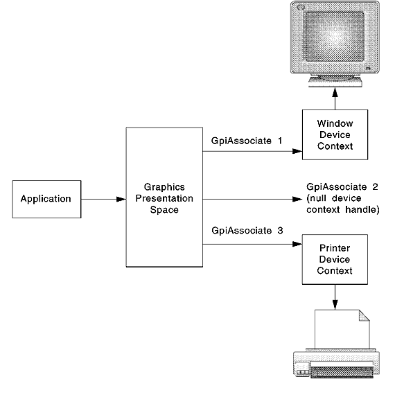 In order to print, a device context must be associated with a GPI presentation space (PS).