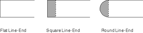 The following figure illustrates these three types of line ends. Your application can determine the current geometric line end by calling GpiQueryLineEnd.