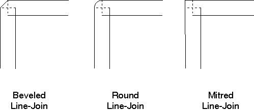 The line join attribute specifies the shape formed by two intersecting geometric lines. Where one wide line joins another, the nature of the join must be defined. An application can select a beveled, rounded, or mitred line-join style.