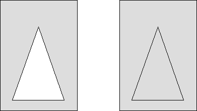 The following figure shows two identical paths that were filled, each using one of the two modes. Each path consists of a triangle drawn within a rectangle. The path on the left was filled using the alternate mode. The path on the right was filled using the winding mode.