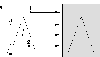 For paths drawn in winding mode (also like area primitives), the direction the boundaries in the path are drawn in determines whether a given point is included in the filled path. The drawn direction of a boundary line depends on both the graphics functions used to draw it and the world coordinates that define it.