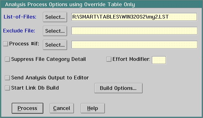 The SMART Filename in the SMART Table Filename group box should be WIN32OS2.TBL. The User UDMD Directory in the User UDMD Migration Data Base Directory group box should be SMART\SMARTAUX\DAPIE32.