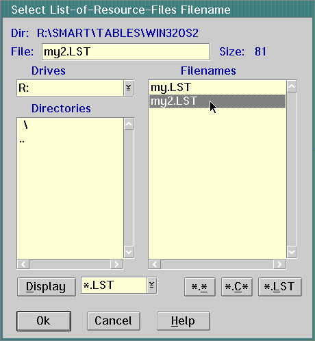 - SMART displays the Select File for a List-of-Resource-Files
